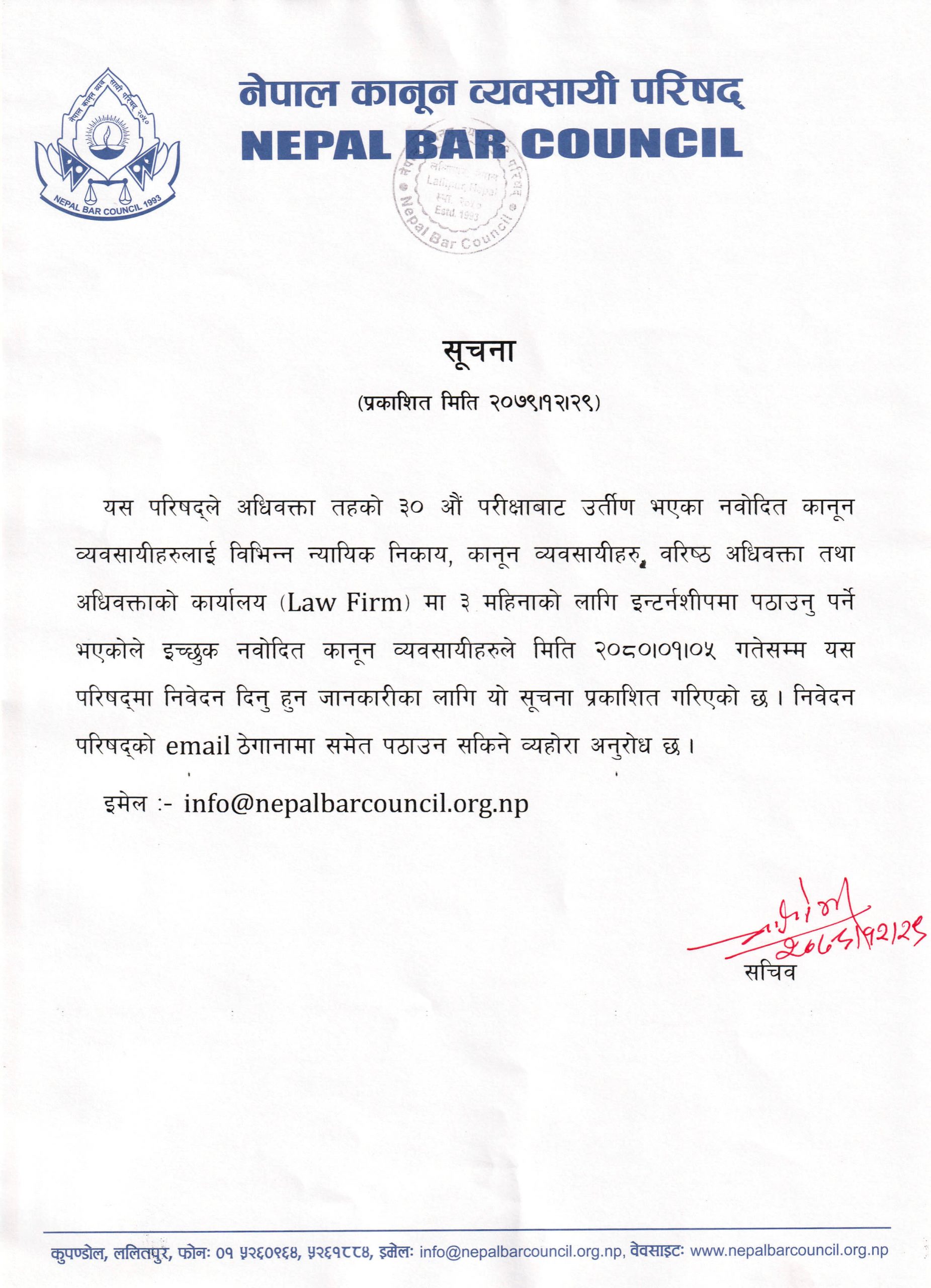 Email:info@nepalbarcouncil.org.np Telephone: +977-01-5260964