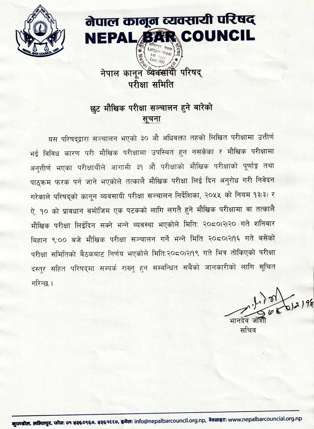 • ३० औं अधिवक्ता तहको छुट मौखिक परीक्षा सञ्चालन हुने सम्बन्धी सूचना